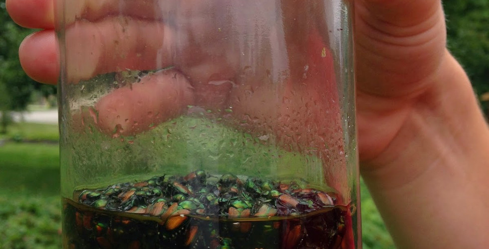 Last week, we aimed to weed and mulch everything at both gardens to cut down on later maintenance. While we didn’t achieve our goal, we are close. On Monday, we weeded the melons at 38th. Zach left for a ministry trip to Puerto Rico on Tuesday, leaving Kayla in charge of the interns. At the Victory Acres CSA drop off on Tuesday, she and I met many people who were picking up shares for their friends—after the holiday weekend, many people were out of town, including Patrick, who came back on Wednesday. On Wednesday, we weeded the okra, beets, and spinach at 46th, and watered everything that was not on the drip line. We also put in cages around the tomatoes. In the afternoon, Patrick and I began to mulch the beets. On Thursday, I cleared out the area by the shed at 46tth, transplanted mint, and mulched. Josh trimmed the overgrown bush at the base of one of the trees, and the others watered, weeded, and harvested raspberries and black raspberries. In the afternoon, Kayla and I shopped for a second-hand refrigerator. We bought one at a used appliance store on Washington St., and had the IWU furniture movers install it. Friday morning, we picked lettuce, Swiss chard, and spinach, which we washed at the Alliance House in the afternoon. Throughout the week, we caught more Japanese Beetles than the chickens could eat.